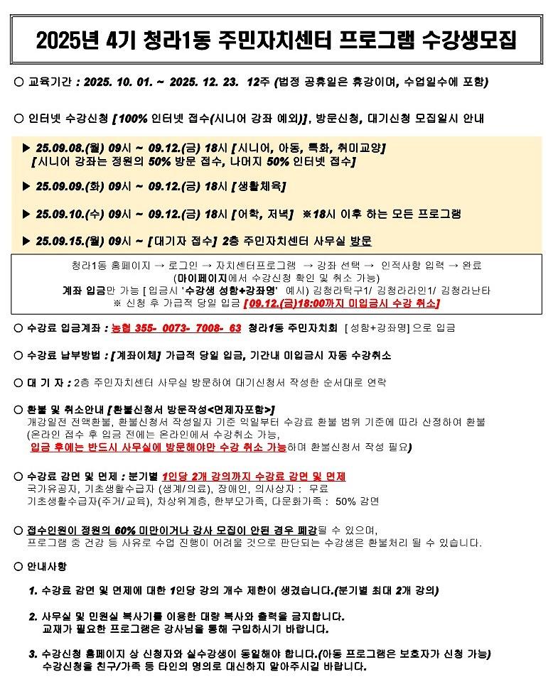 < 수강료 감면 혜택이 1인당 2개 강좌까지로 제한됩니다.>