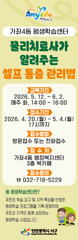 가좌4동 평생학습센터 물리치료사가 알려주는 셀프 통증 관리법 수강신청 안내