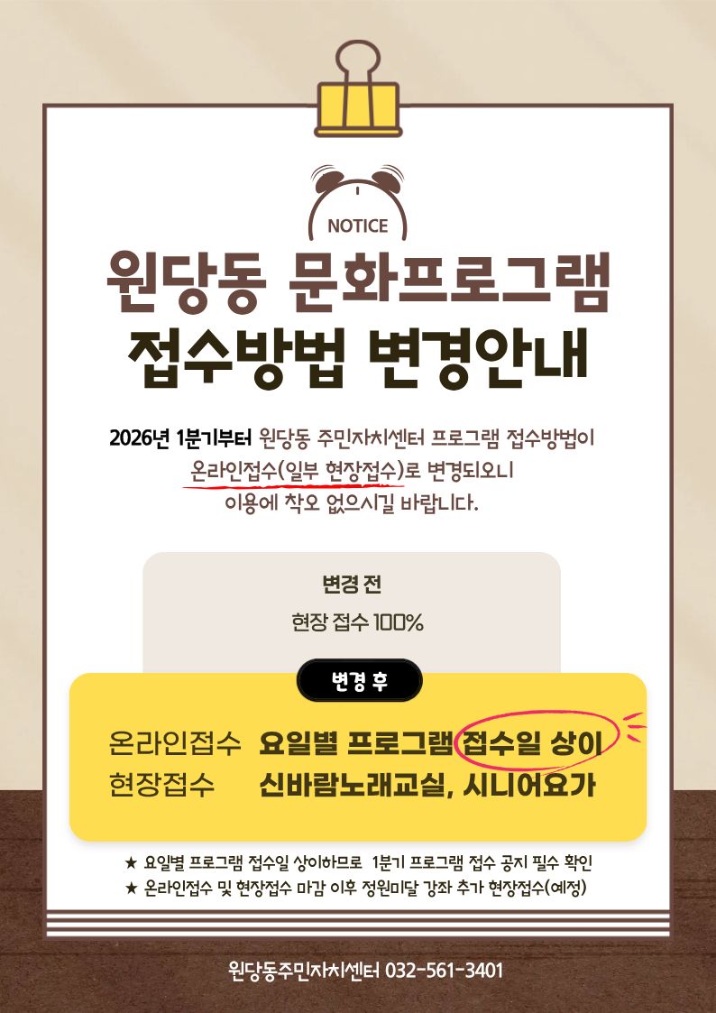 원당동 주민자치센터프로그램 접수방식 변경안내(온라인접수)