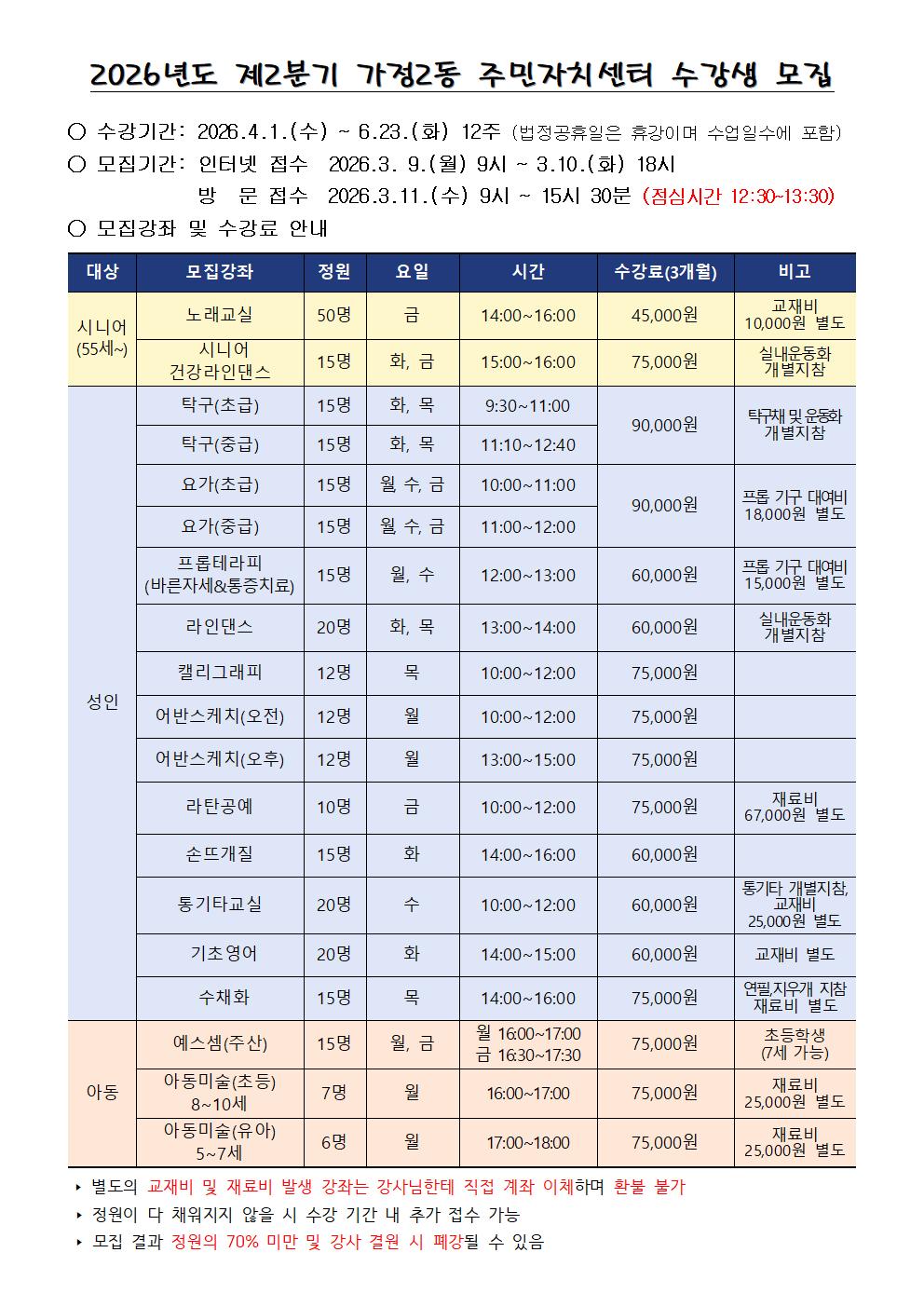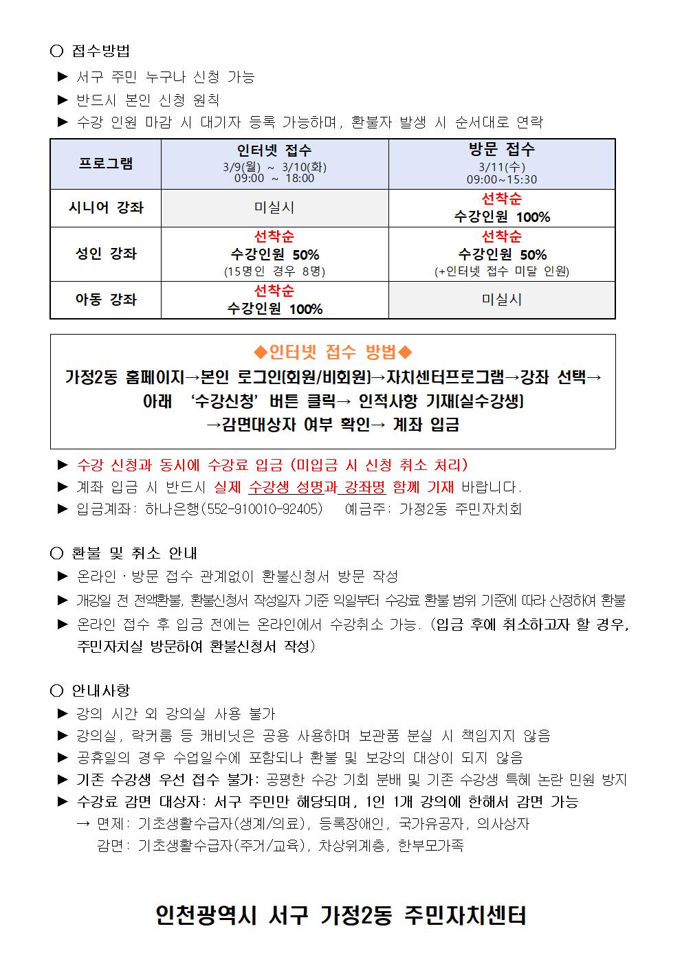 가정2동 2026년 2분기 주민자치 프로그램 수강생 모집 안내
