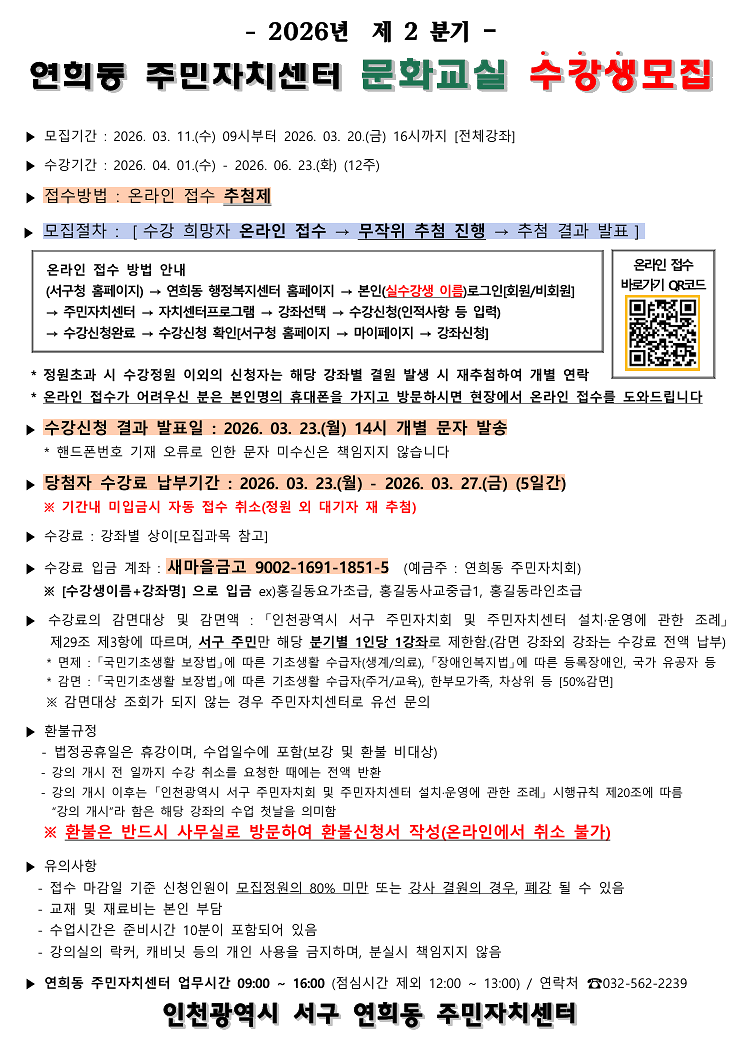 접수기간 : 2026년 3월 11일(수) 9시 ~ 3월 20일(금) 16시