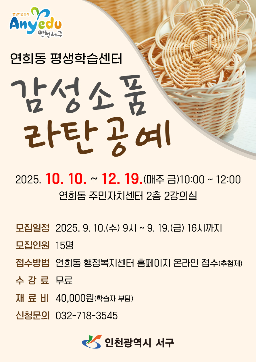 2025년 4분기 연희동 평생학습센터 강좌(감성소품 라탄공예) 안내