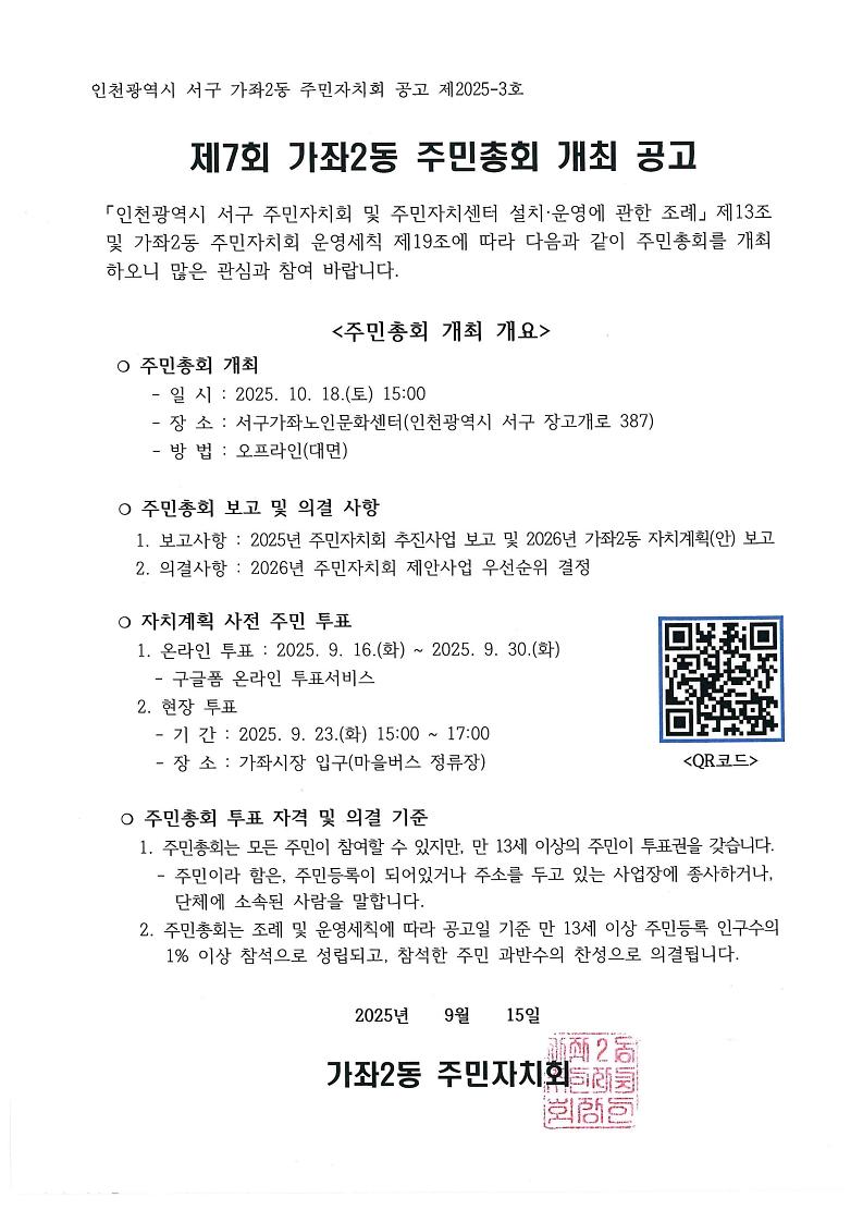 2025년 제7회 가좌2동 주민총회 개최 공고