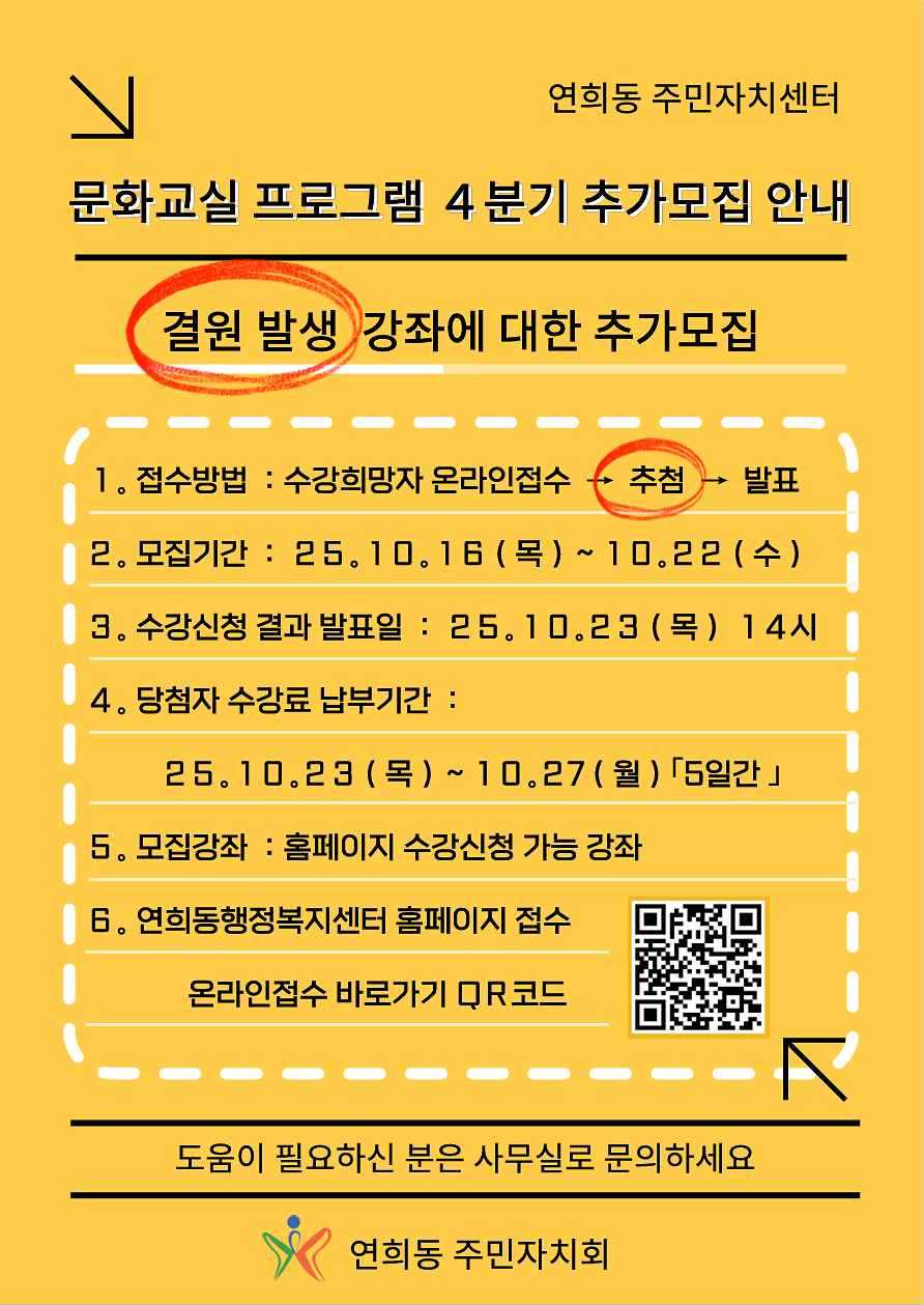 연희동 주민자치센터 문화교실 추가모집 안내