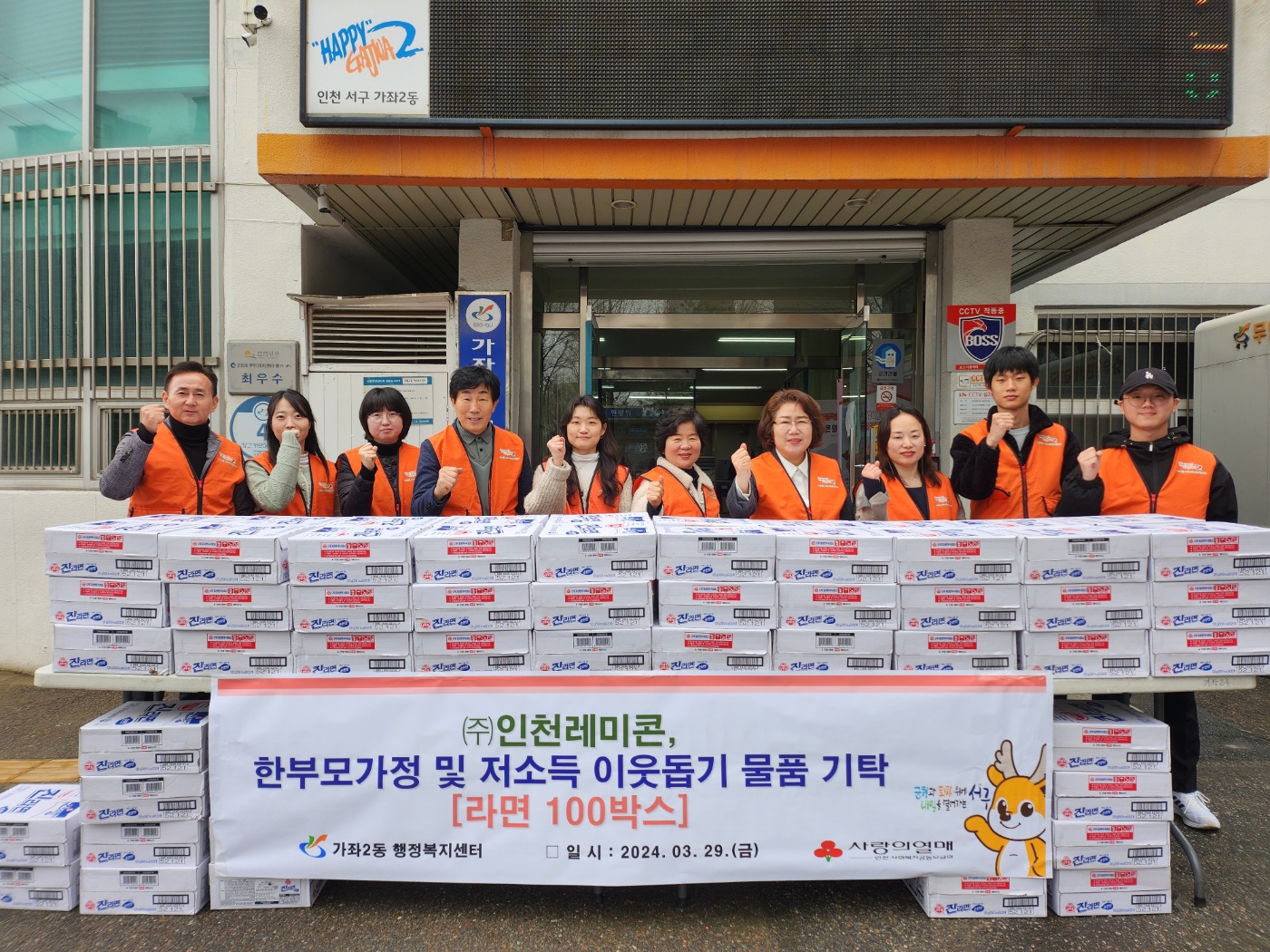 (주)인천레미콘, 가좌2동 저소득층에 사랑나눔 라면 기탁