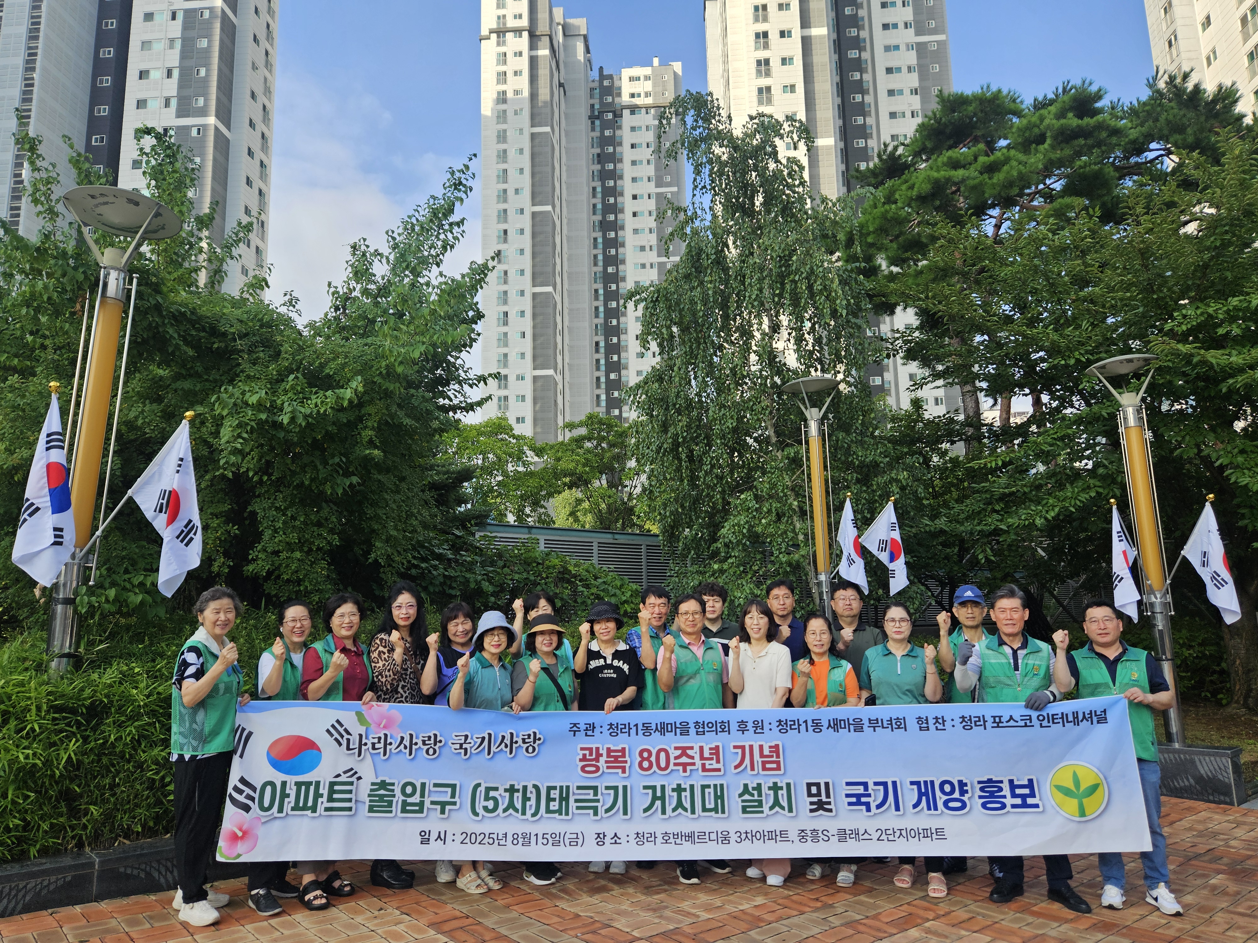 청라1동 새마을협의회, 광복절 맞아 태극기 거치대 설치 사업