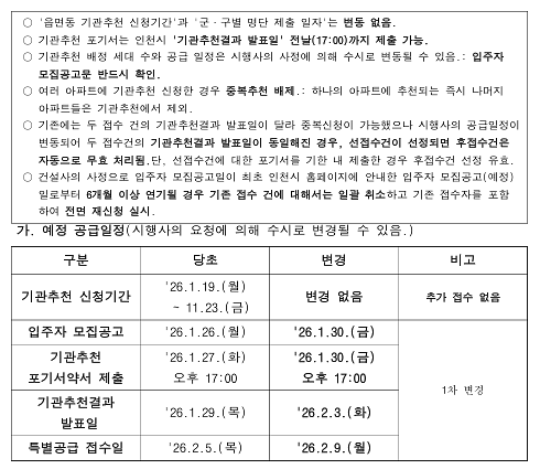 (변경) '두산위브 더센트럴 부평' 장애인 특별공급 일정 변경 알림