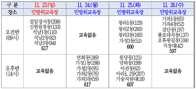 2. 교육장소: 서구민방위교육장(인천광역시 서구 가정로294번길 20)