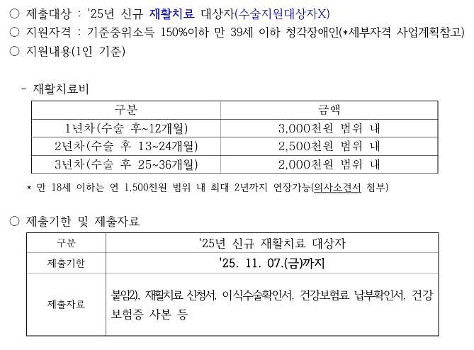 2025년 청각장애인 인공달팽이관 재활지원 대상자 추가모집 안내