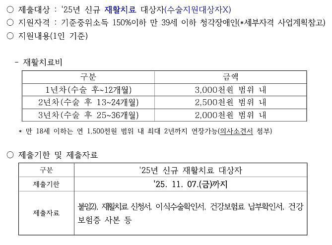 2025년도 청각장애인 인공달팽이관 재활지원 대상자 추가모집 안내