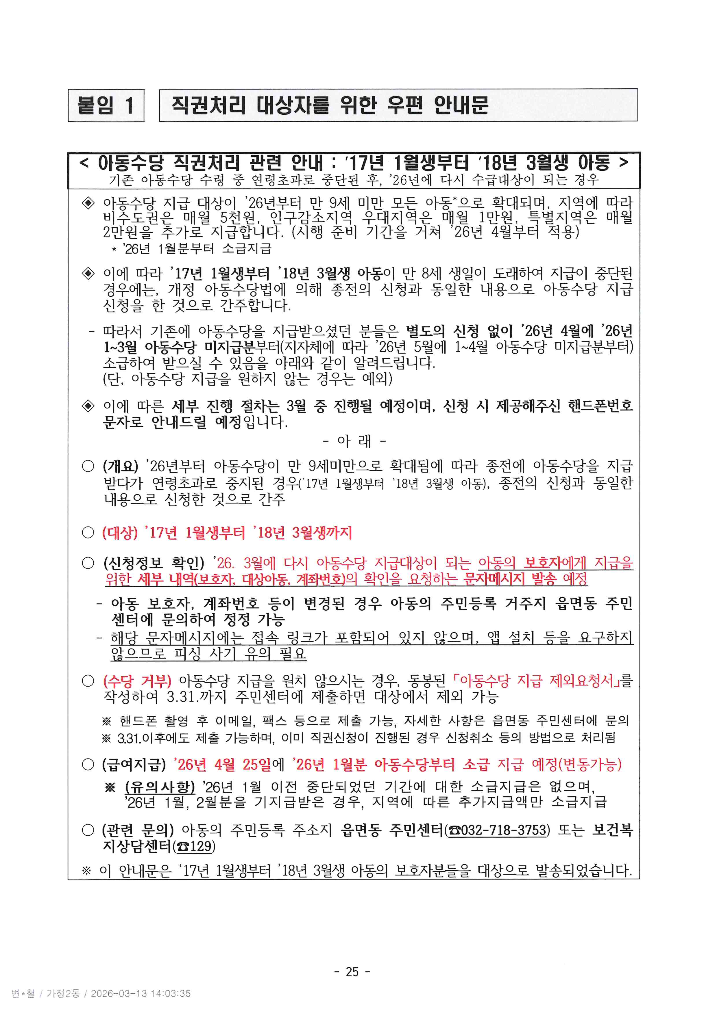 아동수당 확대 대상 안내(17년 1월 ~ 18년 3월생)