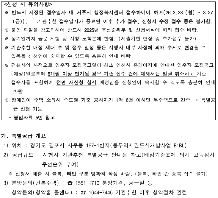 (민간분양) 장애인특별공급 기관추천 안내(풍무역세권 수자인 그라센트 2차)