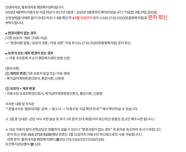 아동수당 지급 연령 확대 안내(2017년생, 2018년1~3월생)