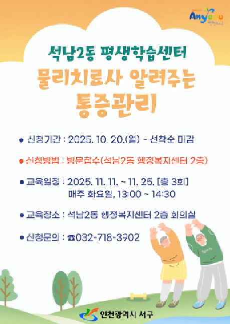 물리치료사가 알려주는 통증관리 수강생 모집(무료)