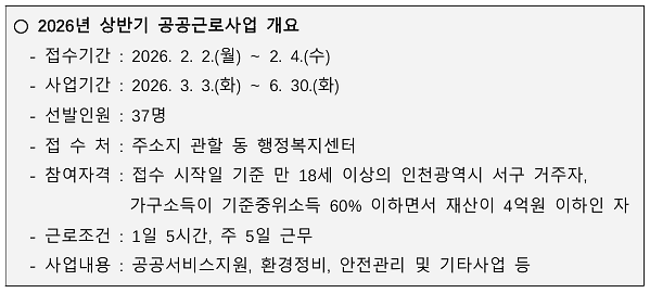 < 2026년 상반기 공공근로사업 > 참여자 모집을 다음과 같이 공고하오니 많은 참여 바랍니다.