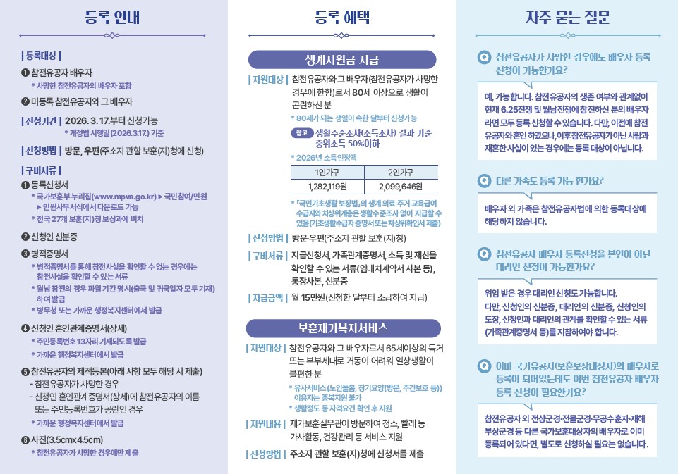 참전유공자 배우자 등록제도 시행 안내 및 홍보
