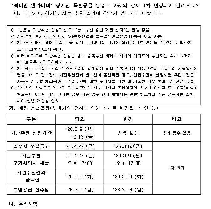 (변경) '래미안 엘라비네' 장애인 특별공급 일정 변경 알림