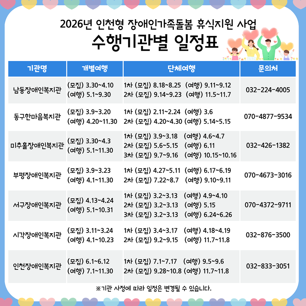 인천형 장애인가족 휴식지원사업 안내