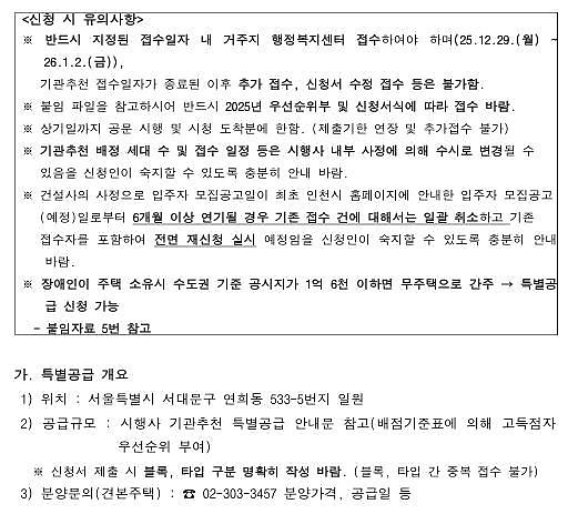 (민간분양)장애인특별공급 기관추천 대상자 안내(드파인 연희)