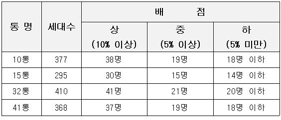 참고) 제출서류 3번 해당 통 지역주민(세대주)의 통장 후보자 동의서 배점 기준