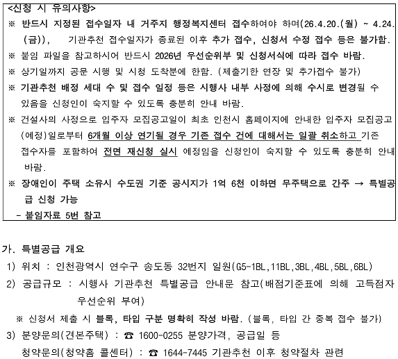(민간분양)장애인특별공급 기관추천 안내(더샵 송도 그란테르)