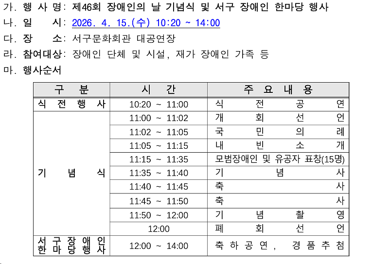 제46회 장애인의 날 기념식 및 서구 장애인 한마당 행사 홍보