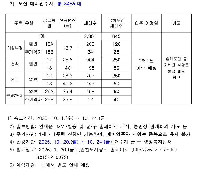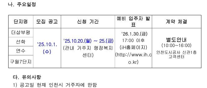3) 문의사항: 인천도시공사 ☎1522-0072 (대표번호)