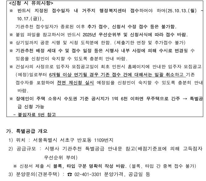 (민간분양)장애인특별공급 기관추천 대상자 안내(반포 래미안 트리니원)