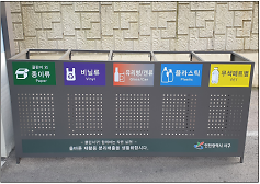 - 품목: 골판지 외 종이류, 비닐류, 유리병/캔류, 플라스틱류, 무색PET류 [총 5분류]