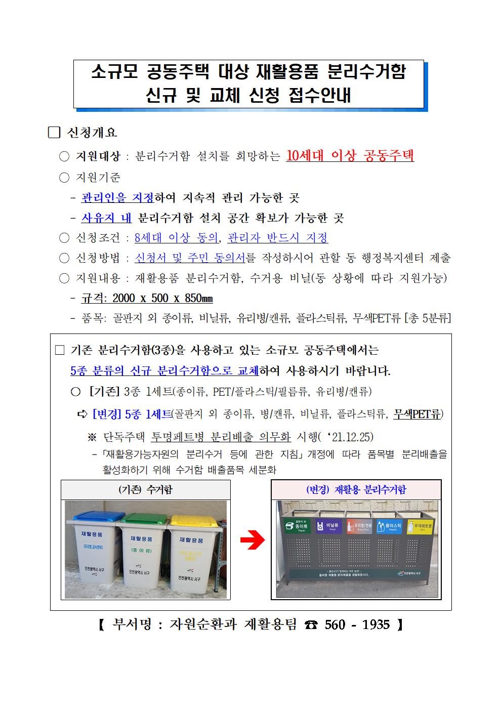 【 부서명 : 자원순환과 재활용팀 ☎ 560 - 1935 】