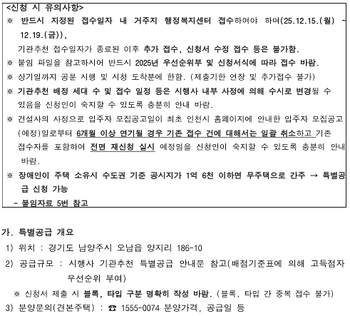 (민간분양)장애인특별공급 기관추천 안내(오남역 서희스타힐스 여의재 3단지)