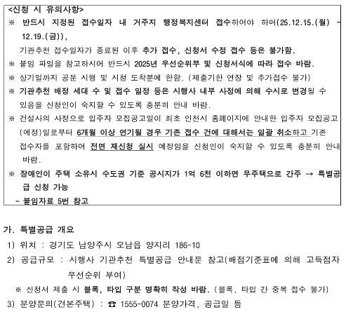(민간분양)장애인특별공급 기관추천 대상자 안내(오남역 서희스타힐스 여의재 3단지)