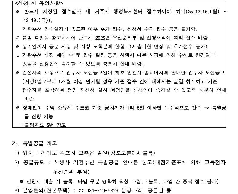 (민간분양) 장애인특별공급 기관추천 대상자 안내(김포고촌2 A1블록)