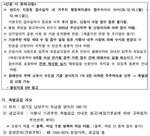 (민간분양)장애인특별공급 기관추천 대상자 안내(오남역 서희스타힐스 여의재 3단지)