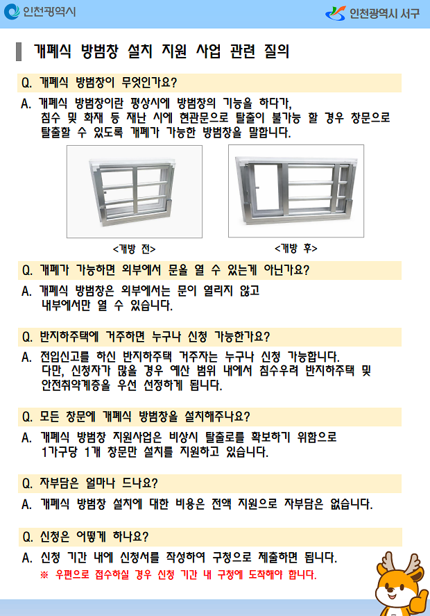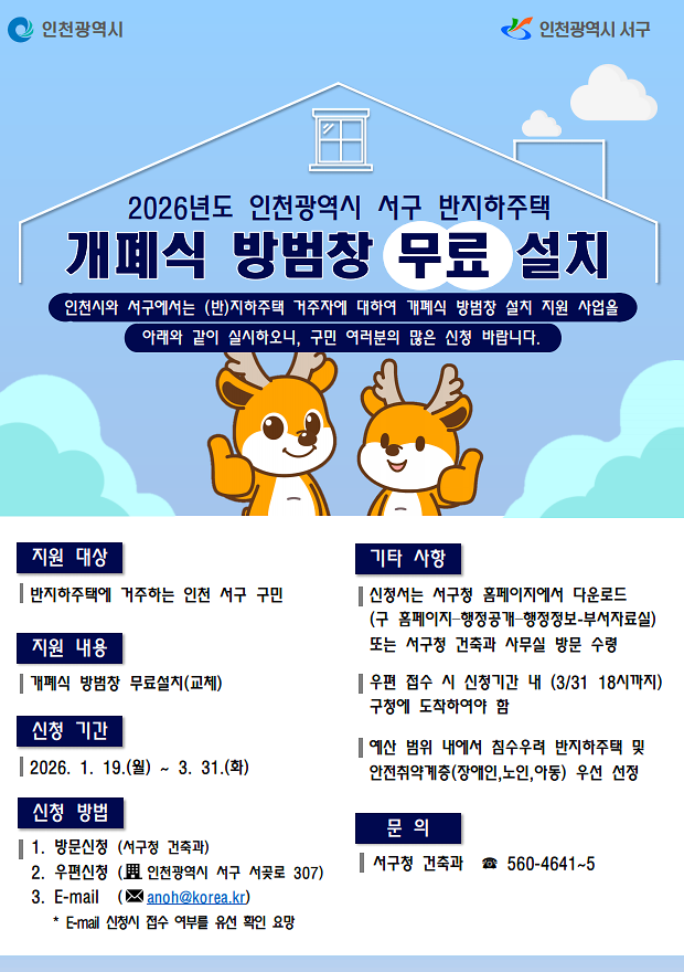 2026년도 반지하주택 개폐식 방범창 설치 지원사업 안내