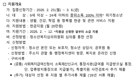 2026년 위기청소년 특별지원 신청 안내