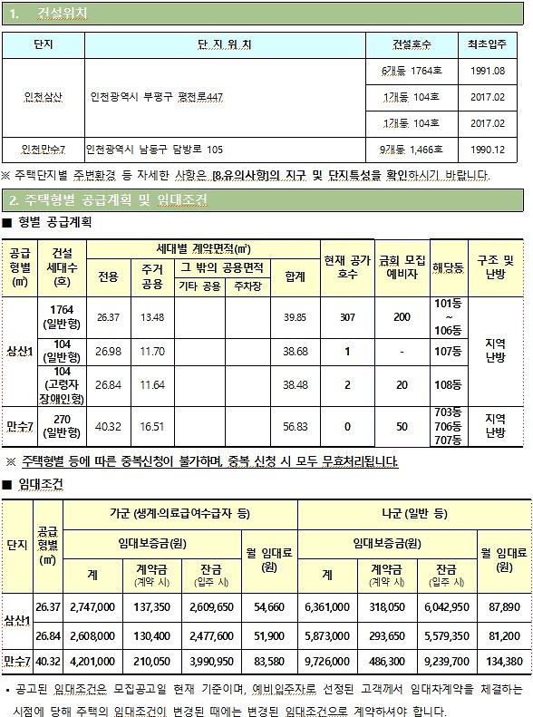 한국주택공사에서 LH 영구임대주택(삼산1단지, 만수7단지)에 대한 예비 입주자 모집 안내드립니다.