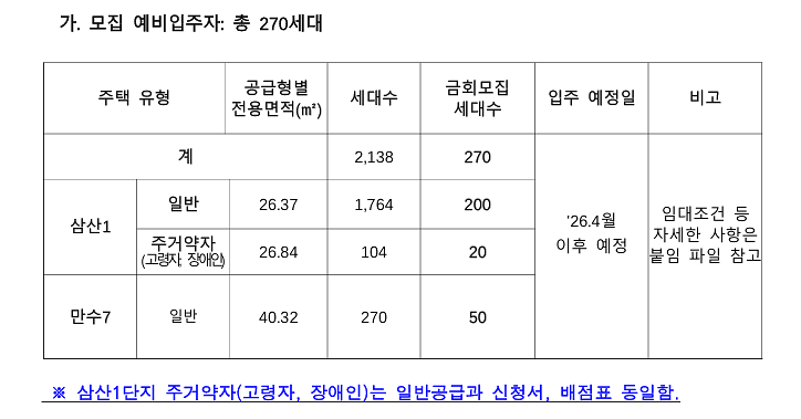 한국주택공사에서 LH 영구임대주택(삼산1단지, 만수7단지)에 대한 예비 입주자 추가 모집 안내드립니다.