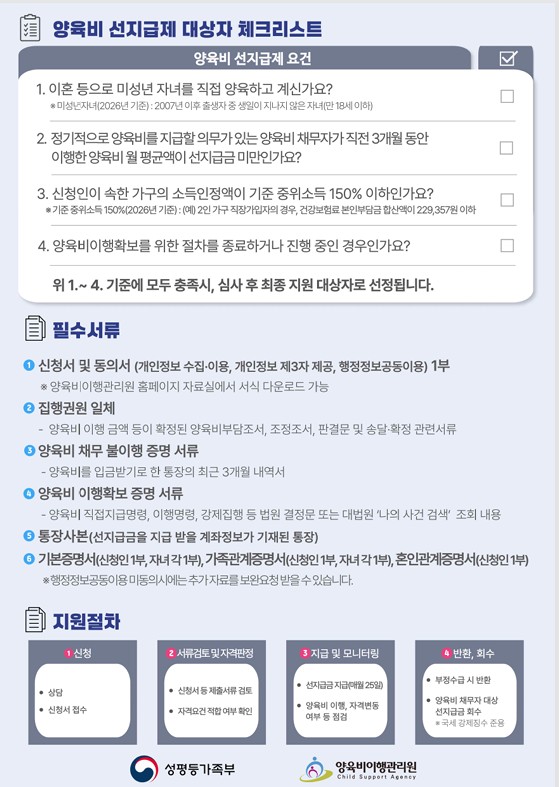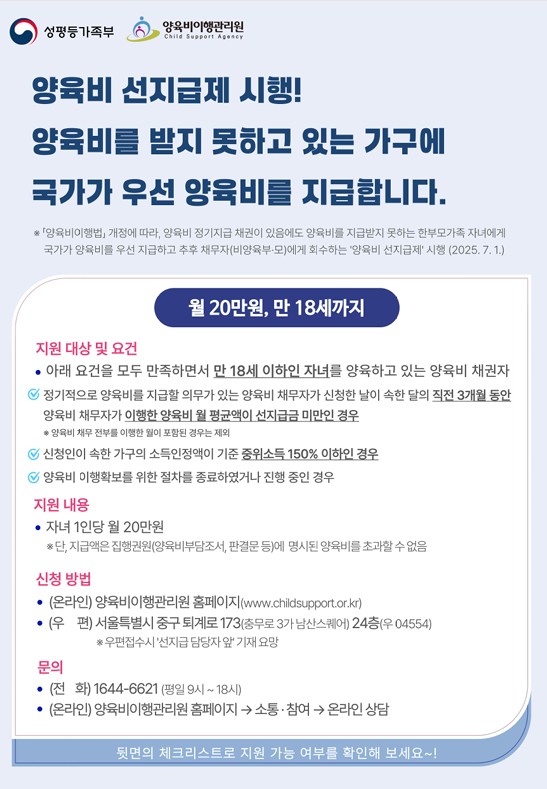 양육비 선지급제 시행 안내