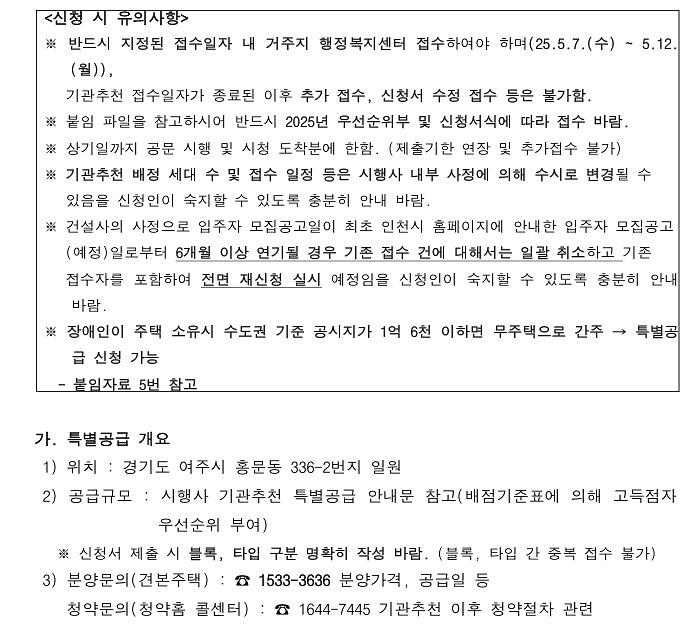 (민간분양)장애인특별공급 기관추천 신청안내 (여주역 로제비앙 센텀)