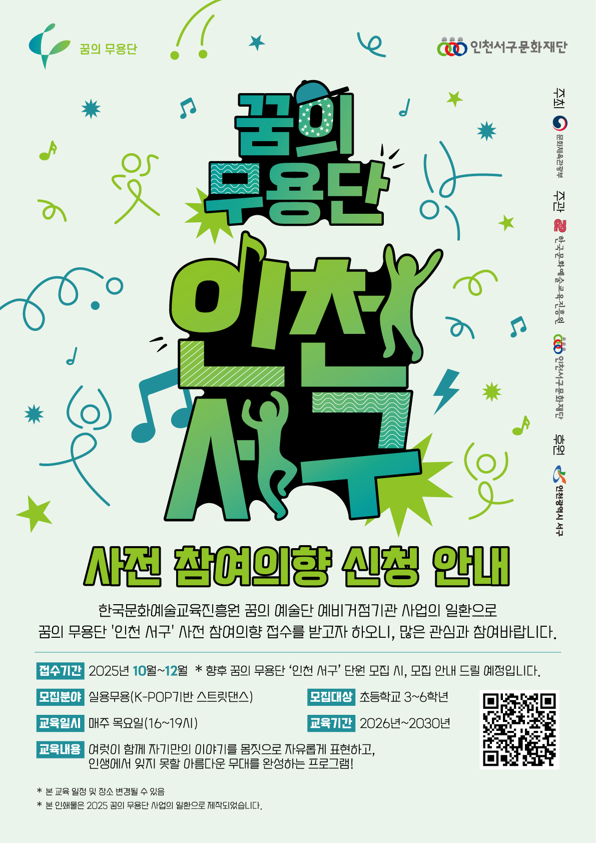인천서구문화재단 꿈의 무용단 '인천 서구' 사전 참여의향 신청 안내