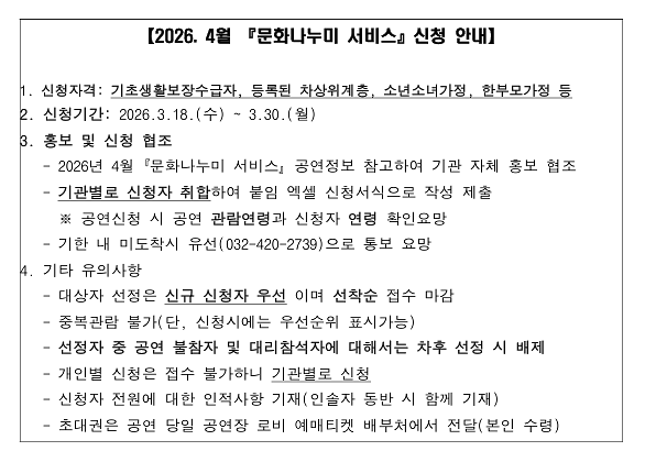 2026년 4월 문화나누미 서비스 신청 안내