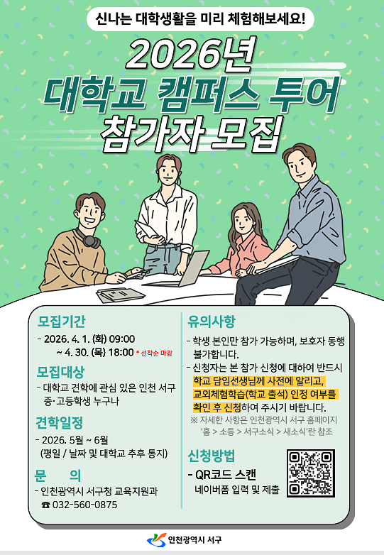 2026년 대학교 캠퍼스 투어 참가자 모집 안내