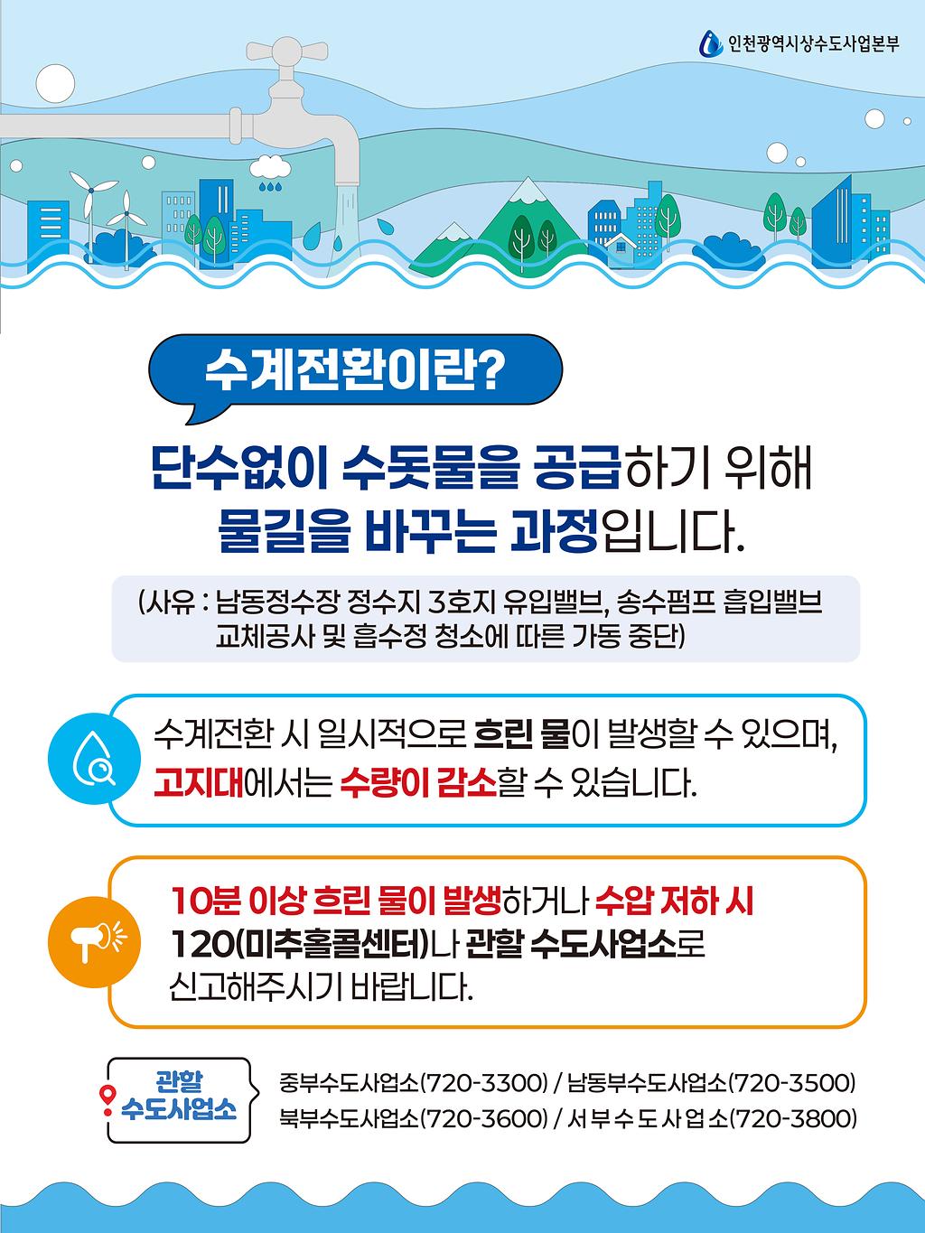 남동정수장 가동중단에 따른 <수돗물 공급체계 변경> 홍보