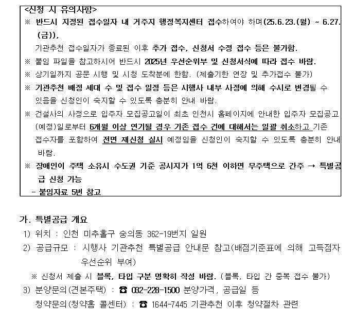 (민간분양)장애인특별공급 기관추천 대상자 명단 접수안내(힐스테이트 숭의역)