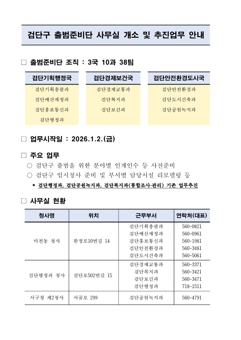검단구 출범준비단 사무실 개소 및 추진업무 안내