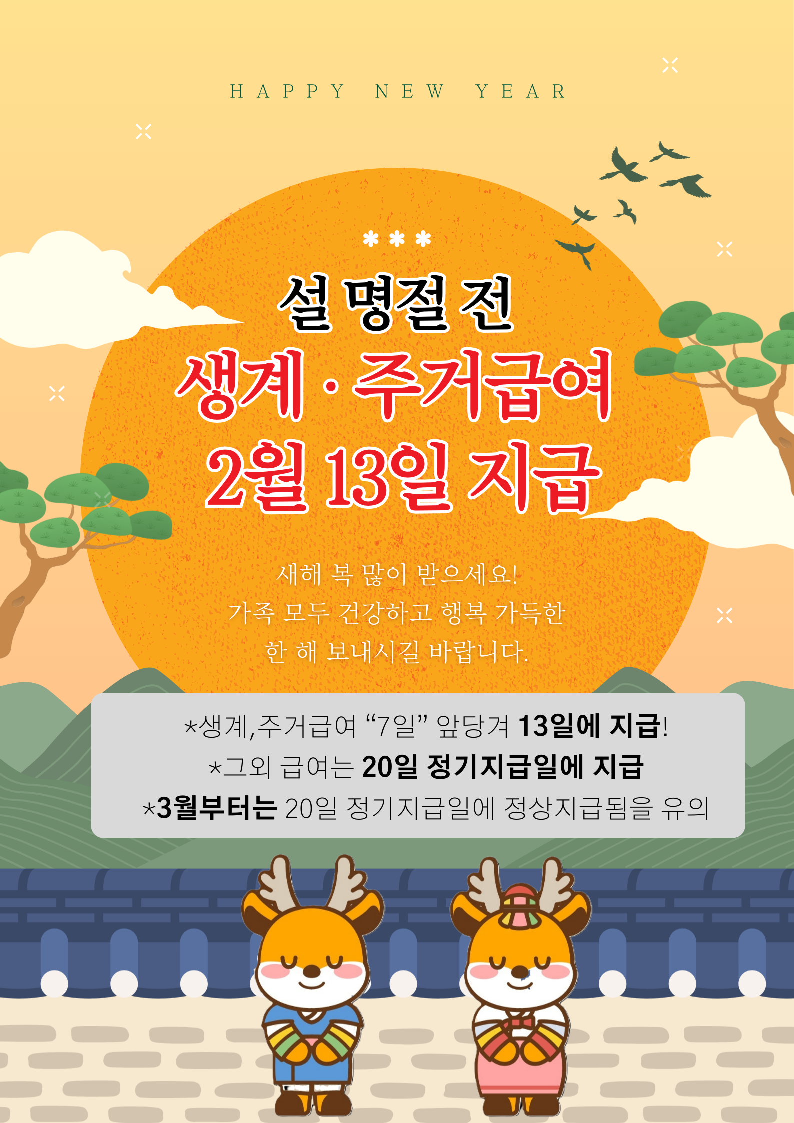 26년 2월 생계, 주거급여 지급일정변경(13일 지급) 안내