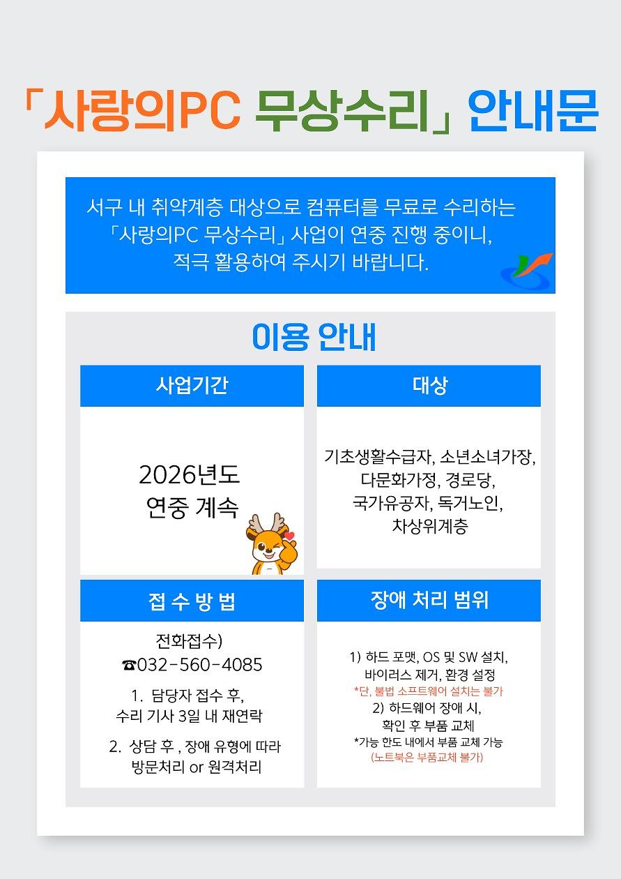 「사랑의 PC 무상수리」안내문