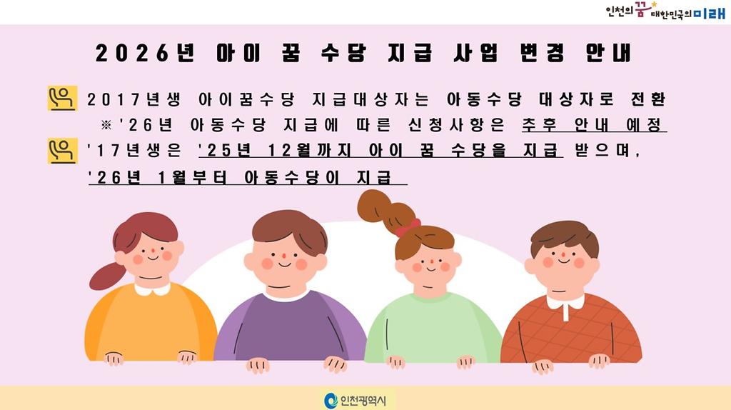 < 아이 꿈 수당 신청안내 및 2026년 변경 사항 안내 >