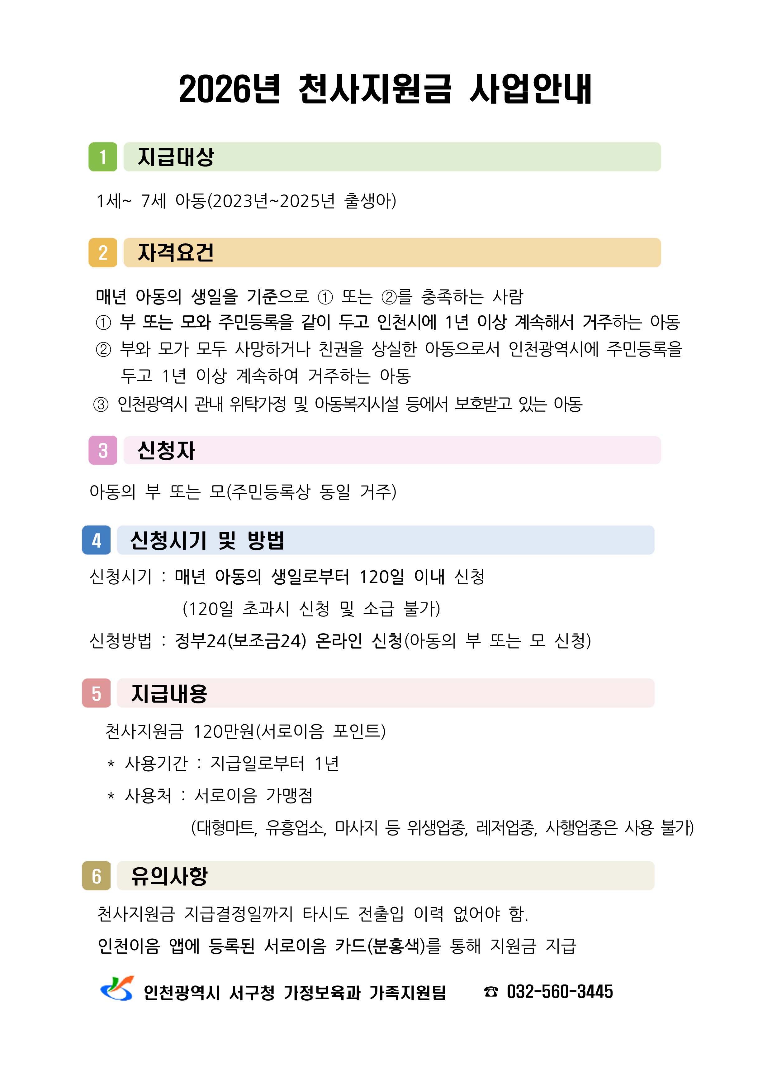 2026년 천사지원금 안내
